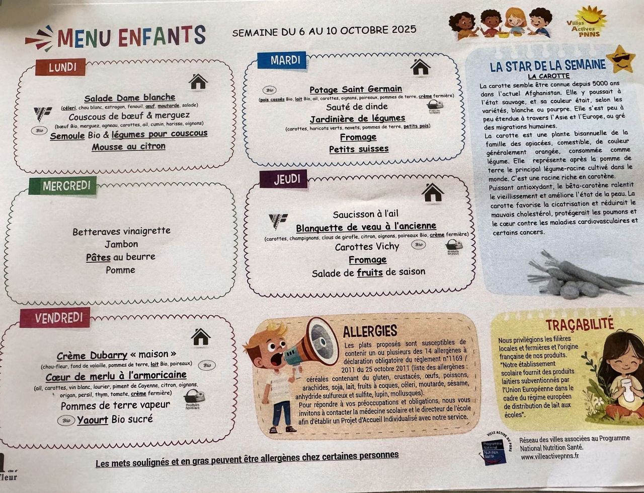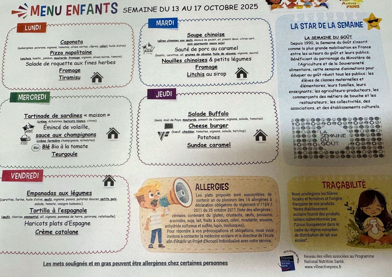 Menu cantine